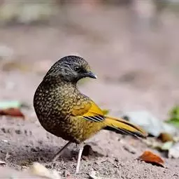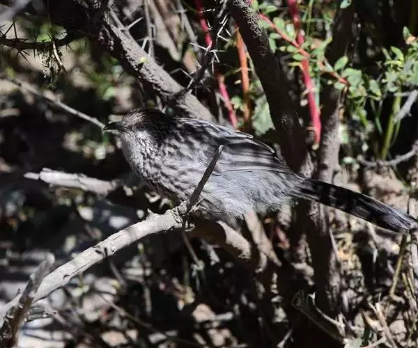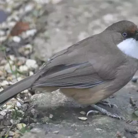 五六只成群,藏隐于干旱灌丛的稠密林下植被中,在落叶间翻拣觅食。鸣声为一连串颤抖的哨音而似鸫;叫声沙哑似喘息。