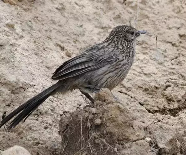 大草鹛(学名:Babax waddelli)中型鸟类,体长31~34厘米。上体灰色具粗著的黑褐色条纹,腰和尾上覆羽纵纹不明显。颊和耳羽灰色,髭纹由黑色点斑组成,其间杂有灰色。颏、喉和上胸灰色具细的黑色羽干纹,嘴较长而下曲。特征极明显,野外不难识别。