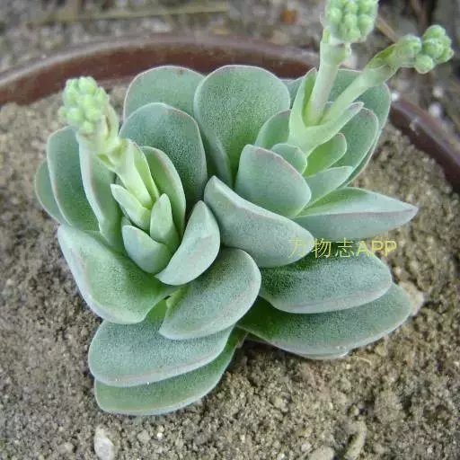 景天科风车草属的多肉植物,原产于墨西哥。株形和风车草属胧月极为相似。花瓣被蜡,叶排成延长的莲座状被…