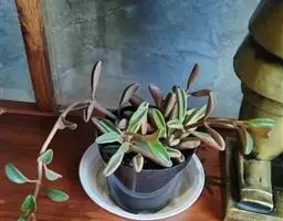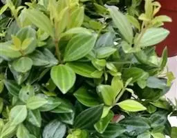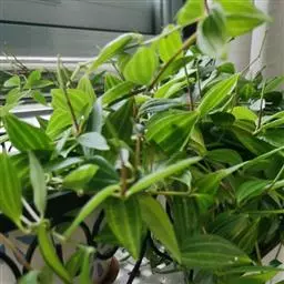 花叶椒草 也称斑叶椒草,为圆叶椒草的栽培变种。植株直立生长,短茎红褐至绿褐色,肉质。叶宽卵形,质厚,长5厘米至12厘米,宽3厘米至5厘米,绿色,有黄白色斑纹,边缘犹为 圆叶椒草 明显。