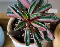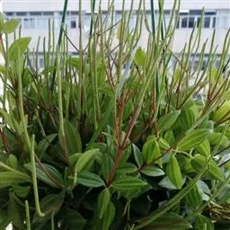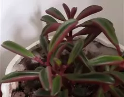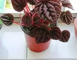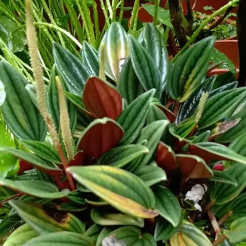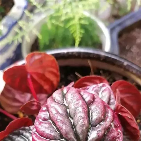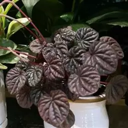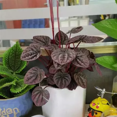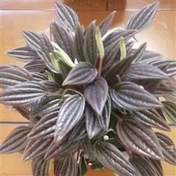 红背椒草 又名雪椒草、赤背椒草,为斧叶椒草椒草的相似种。植株矮小,易分枝,直立生长,高5厘米至8厘米,肉质茎暗红色。叶片肥厚多肉,对生或轮生,具细短柄,叶片椭圆形,两侧向上翻,使叶面中间形成一浅沟,背面有龙骨状突起,叶面暗绿色,有光亮,稍呈透明状,叶背则为暗红色。穗状花序,小花绿色,春夏季节开放。