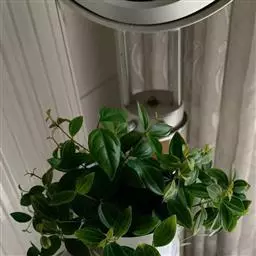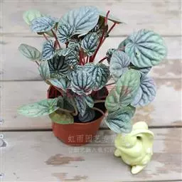 灰绿椒草 又名银叶椒草、银叶豆瓣绿。叶片近似圆形,长约6 厘米,叶色银绿或灰绿,叶脉凹陷,叶面有皱纹,叶缘呈轻微的波浪形,叶柄红色或红白相间。