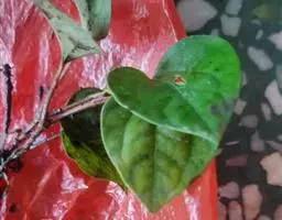 皱叶椒草 又名皱叶豆瓣绿。植株无茎或茎极短,叶片呈小型丛生状,具红褐色或红、粉红色长柄,叶片心形,长3厘米至4厘米,深绿至墨绿色,叶面有皱褶,整个叶面呈波浪状起伏,皱褶的基部几乎呈黑色。穗状花序白色或淡绿色,长短不等,春末至初秋开放。本种另有小叶品种,其叶片较小;花叶变种,新叶有黄白色斑点或斑纹。
