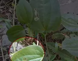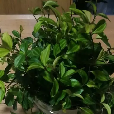 圆叶椒草(Peperomia obtusifolia)直立性植株,高约30 cm。单叶互生,叶椭圆形或倒卵形。叶端钝圆,叶基渐狭至楔形。叶面光滑有光泽,质厚而硬挺,茎及叶柄均肉质粗圆。叶长5~6 cm,宽4~5 cm,叶柄较短,只有1 cm,但生根容易。节间较短,节间处也极易生根。
