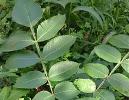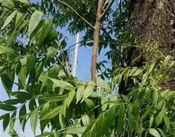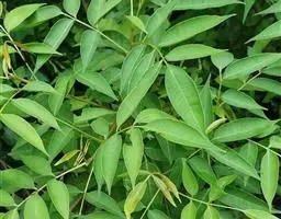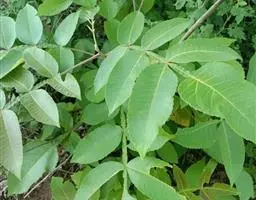 奇数羽状复叶互生,常螺旋状排列,有小叶4-6对,叶轴圆柱形,被微柔毛;叶柄长7-14厘米,被微柔毛,近基部膨大,半圆形,上面平;小叶膜质至薄纸质,卵形或卵状椭圆形或长圆形,长6-13厘米,宽3-6厘米,先端急尖或渐尖,基部偏斜,圆形或阔楔形,全缘,叶面通常无毛或仅沿中脉疏被微柔毛,叶背沿脉上被平展黄色柔毛,稀近无毛,侧脉10-15对,两面略突;小叶柄长4-7毫米,上面具槽,被柔毛。