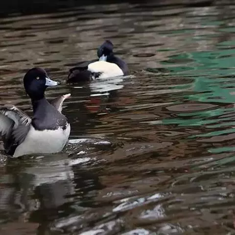环颈鸭为雁形目鸭科的鸟类。善潜水,活动于湖泊、水库、池塘中,有时也混入其它鸭群活动于浅水处。…