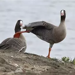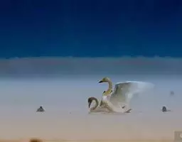扁嘴天鹅:体长90-115厘米,体羽白色,羽端黑色,在飞行时则很明显。雁喙和脚红色。…