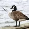 黑雁是雁形目鸭科黑雁属鸟类,又称黑鹅。头、颈、胸、嘴及脚黑褐色;虹膜褐色;背及两翼灰褐色;尾下覆羽白色;胸侧及胁部多近白色纹;颈部两侧各具一个特征性白色横纹,在颈前后断开,未能联成颈环。幼鸟颈部无白斑,而翅上多白色横纹。黑雁繁殖于北美洲、西伯利亚极地的苔原冻土带,越冬于南方沿海的草地及河口。在中国安徽也能见其身影。主要栖息在海湾、海港及河口等地,在冬季里大多出现在有耐碱植物生长的湖泊和水库周围,也出现在周围地势低洼的咸水湖和沿海地区,偶尔还出现在农田地里。性活跃,喜集群,常成群活动和栖息。主要以植物性食物为食。繁殖期在6-8月,雌鸟孵卵,雄鸟通常在距巢100米以内范围内守候警诫。雌鸟孵卵时常将头和颈朝地面平伸出去以降低高度。孵化期为22-28天。黑雁被列入中国林业局2000年8月1日发布的《国家保护的有益的或者有重要经济、科学研究价值的陆生野生动物名