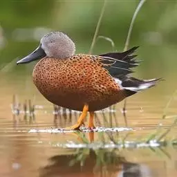 蓝翅鸭是雁形目、鸭科的鸟类。身长37-41 cm,头部灰色,眼圈、眼纹和眼先均灰白色。体羽红褐色,…