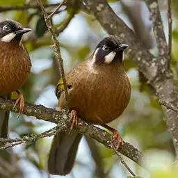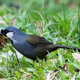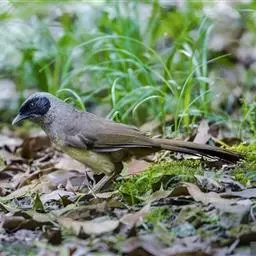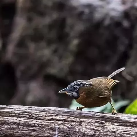 黑顶噪鹛:中型鸟类,体长24-26厘米。前额、脸、颏、喉黑色,头顶黑褐沾棕或深棕橄榄褐色,…