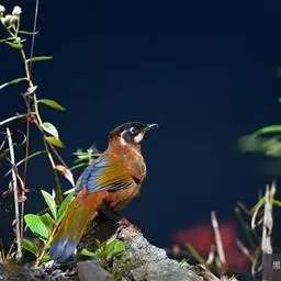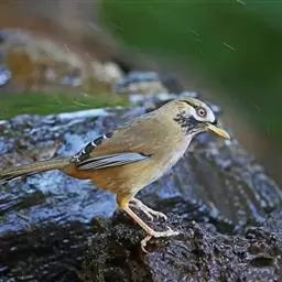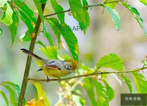 习性: 斑喉希鹛 繁殖期间成对活动,其他季节多成3~5只或10余只的小群,有时亦与其他希鹛混群。常在高大乔木树冠层枝叶间、有时也在森林中下层和林下及林缘地区高的灌木枝头活动和觅食。性活泼,行动敏捷,常频繁的在树枝叶间跳跃或飞翔,不时发出“久~违,久~违”的叫声。