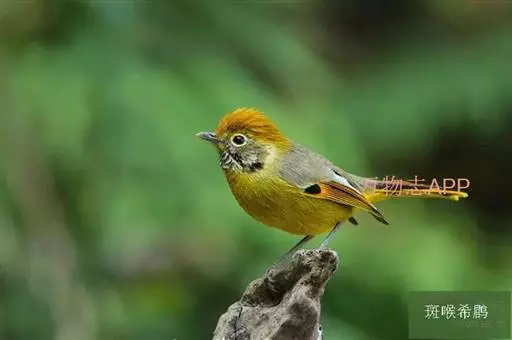 斑喉希鹛小型鸟类,体长14~17厘米。头具羽冠,前额和头顶羽冠金黄褐色,头侧灰黄色具黄色眼圈。…