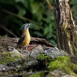 剑嘴鹛:中型鸟类,体长21-22厘米。嘴特别细长而向下弯曲,头顶和头侧烟灰色具长而窄的白色眉纹,…