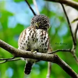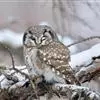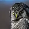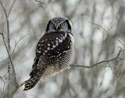 长尾鸮(学名:Surnia ulula)体长35-40厘米,体重247-375克,是一种中等大小及夜间活动的猫头鹰,是猛鸮属下的唯一物种。喙坚强而钩曲。嘴基蜡膜为硬须掩盖。翅的外形不一,第五枚次级飞羽缺。尾短圆,尾羽12枚,有时仅10枚。脚强健有力,常全部被羽,第四趾能向后反转,以利攀缘。爪大而锐。尾脂腺裸出。无副羽,间或留存。耳孔周缘具耳羽,有助于夜间分辨声响与夜间定位。