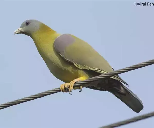 体形及飞羽形似黄脚绿鸠,但嘴基柔软部分发达;尾近凸形,中央尾羽全为绿色。雄鸟的翅及背上均有栗色,上胸有橙黄色区。
