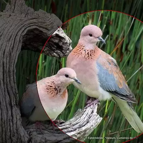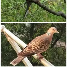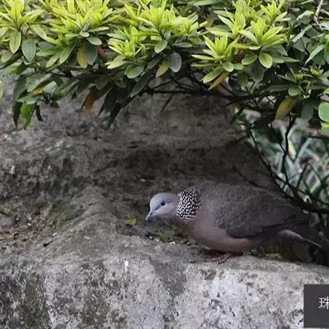 欧斑鸠体长27厘米,是一种体型略小的粉褐色斑鸠。颈侧具多黑白色细纹的斑块,翼覆羽深褐,…