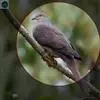 体形大小及飞羽情况似针尾绿鸠,但尾近方形,中央尾羽呈灰色。雄鸟上体及翅上无栗色区,而胸部却有紫色带斑。