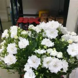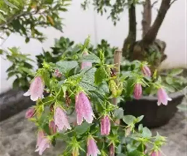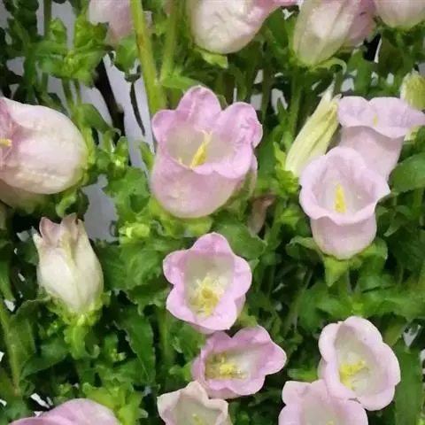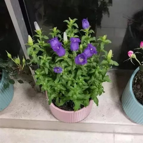 当幼苗长出5~6片真叶时可移栽上盆,用口径为9~11cm的花盆进行移植。移植一般在阴天或下午4点以后,种植时不要太深。种后需马上浇足定根水,使小苗与基质充分接触,如阳光太强,需用遮阳网适当遮盖3~4天。风铃草早期生长较为零乱,但在后期生长中植株会自然整齐紧凑。风铃草在生长过程中可不摘心,也可作摘心处理。如需摘心,可在幼苗长至6~8cm 左右时进行,以缩短植株高度,增加侧枝及花朵数量。浇水时要做到适时适量,根据盆内基质干湿度情况和天气的变化进行。浇水时盆土要见干见湿,浇则浇透,但不要使盆内积水。阴雨天要少浇或不浇,气温高、蒸发量大时要多浇,反之则少浇。植株需肥量中等。种后每周交替施用浓度为150~ 200ppm 的氮肥和钾平衡肥,应避免铵和氮的含量过高。生长旺盛期每15~20天施一次稀薄腐熟饼液肥或人粪液肥。花前增施含磷、钾的复合肥,可防止花期倒伏,冬季和盛夏则应停止施肥。风铃草喜长日照,每天14小时光照可以自然开花。风铃草在阳光充足条件下,植株生长整齐,高度一致,开花整齐,花色鲜艳。半阴条件下,植株生长偏高、花序伸长、花色较淡。冬季无霜的条件下,室内或室外温度可保持在3℃~5℃ 。室外栽培需覆盖,3℃ 以下生长缓慢。