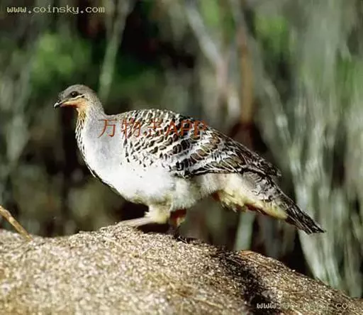 眼斑冢雉(学名:Leipoa ocellata):体长60-65厘米,羽毛呈浅褐色,有许多白斑。它们的脖子很长,且光秃无毛。雄鸟的脸呈火红色,颌下的肉垂呈鲜黄色。