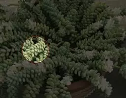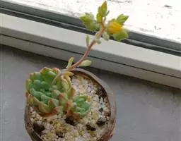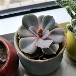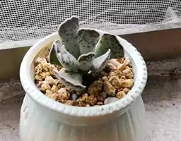 蓝黛莲是一种景天科厚叶草属植物。叶片呈略扁的圆柱形,排列成莲座状;颜色为灰绿色,…