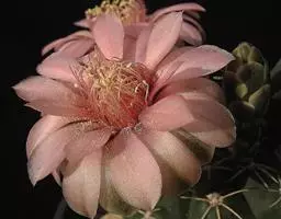 绯花玉 Speg.)是仙人掌科、裸萼球属多肉植物,植株呈扁球形,表皮墨绿色,刺针状,…