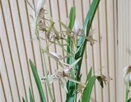 寒兰是兰科兰属的地生草本植物。茎为椭圆形;叶呈带状,尾部修长渐尖,叶脉较明显;每秆花枝开5-12朵,…
