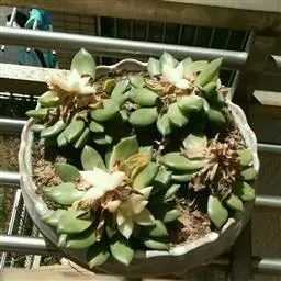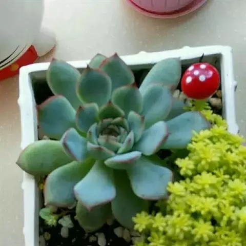 大和锦是景天科拟石莲花属的多肉植物。肉质叶排成紧密的莲座状,广卵形至散三角卵形,背面突起呈龙骨状,…
