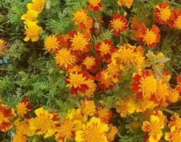 万寿菊是菊科万寿菊属一年生草本植物,别名孔雀菊、缎子花、臭菊花、西番菊、红黄草、小万寿菊、臭芙蓉、孔雀草。万寿菊茎近基部分枝。叶羽状分裂,长5-10厘米,宽4-8厘米,裂片长椭圆形或披针形,具锐齿,上部叶裂片齿端有长细芒,叶缘有少数腺体。头状花序单生,径5-8厘米,花序梗顶端棍棒状。总苞长1.8-2厘米,径1-1.5厘米,杯状,顶端具尖齿。舌状花黄或暗橙黄色,长2.9厘米,舌片倒卵形,长1.4厘米,基部成长爪,先端微弯缺。管状花花冠黄色,长约9毫米,冠檐5齿裂。瘦果线形,被微毛;冠毛有1-2长芒和2-3短而钝鳞片。花期7-9月。万寿菊中国各地均有栽培,在广东和云南南部、东南部已归化,国外原产墨西哥。万寿菊对土壤要求不严,但以肥沃疏松排水良好的土壤为好。耐移栽,种子发芽适温21-24℃,植株生长适合温度为20-29℃。喜温暖和阳光充足的环境,不