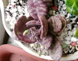 江户紫,景天科伽蓝菜属草本植物,是多年生草本花卉。花白色,但栽培中很少能见到花,常作观叶植物栽培。…