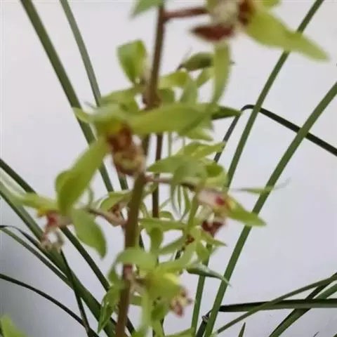 建兰素花,绿白色,清香,一枝开花5至12朵。叶色钢青,细而挺拔,有铮铮铁骨之相,所以叫铁骨素。在日…