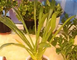 广东石斛:茎直立或斜立,细圆柱形,不分枝,具少数至多数节。叶革质,二列、数枚,互生于茎的上部,狭长…