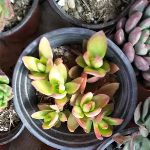 女雏是景天科石莲花属的多肉植物。特征是小巧的株形和橙粉色叶缘。极易生侧芽,…