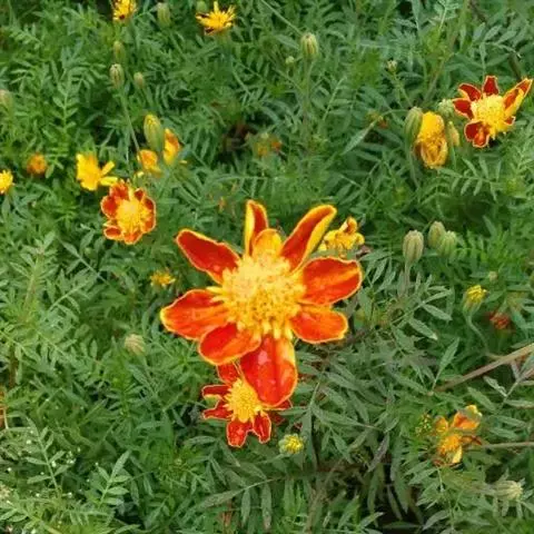 孔雀草菊科、万寿菊属一年生草本植物。茎直立,分枝斜展。叶羽状分裂,头状花序单生,管状花花冠黄色,…