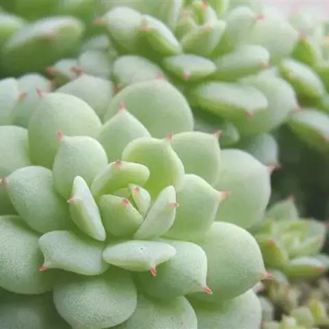 白霜,景天科景天属小型多肉植物,叶子绿色肉质会有白霜覆在表面。