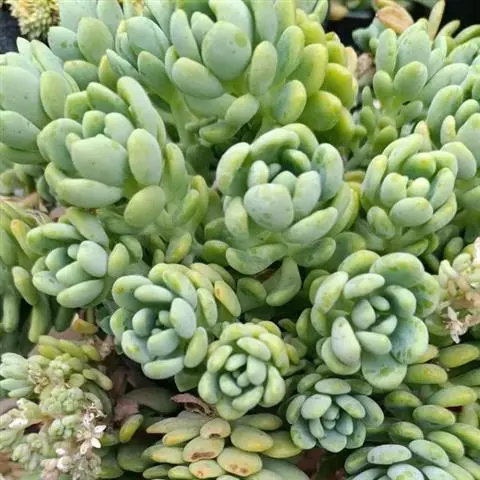 薄雪万年草别名矶小松,景天科景天属多年生草本植物,其细小的蓝绿色棒状叶片环绕生长于茎端,…