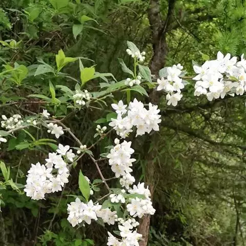 小花溲疏灌木,高约2米;老枝灰褐色或灰色,表皮片状脱落。叶纸质,卵形、椭圆状卵形或卵状披针形。…