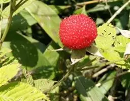 覆盆子为灌木,高1—2米;枝褐色或红褐色,幼时被绒毛状短柔毛,疏生皮刺。小叶3-7枚,长卵形或椭圆形,…