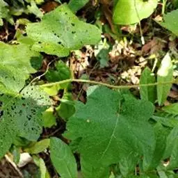 单叶宽卵形,稀长圆状卵形,长5-10(12)厘米,宽a1-8厘米,顶端渐尖,基部心形,上面疏生柔毛或沿叶脉有柔毛,下面被疏柔毛,沿叶脉毛较密,中脉上常疏生小皮刺,边缘明显3-5裂或呈波状,有细锯齿;叶柄长2-4(5)厘米,具细柔毛或近于无毛,有稀疏小皮刺;托叶离生,线状深裂,有细柔毛或近无毛,常脱落。