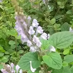 叶通常4对,卵圆形或椭圆状卵圆形,长3—11厘米,宽2—4.5厘米,先端渐尖或短渐尖,基部圆形,边缘疏生极不明显的小齿或浅波状或近全缘,两面无毛,背面密生小凹腺点,侧脉约4对;叶柄水红色,长0.7—1.2厘米,被具腺柔毛。总状花序顶生间或腋生,长9—15厘米,花对生,花梗长2—2.5毫米,与序轴密微柔毛及具腺柔毛;苞片退化。花萼于花时常呈紫红色,长约2毫米,外被微柔毛,盾片开展,半圆形,高1.5毫米。