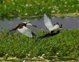 铜翅水雉雉鸻科铜翅水雉属的一种物种,是小型涉禽,体长28-31厘米。头颈、下体黑色,具金属色辉。…