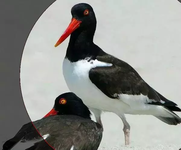 蛎鹬共有4个亚种,头、颈、上胸、上背和肩黑色,泛亮光。下背、腰、尾上覆羽和尾羽基部白色;尾羽余部黑色。胸以下,包括腹部及其两侧和尾下白色。初级飞羽和次级飞羽黑褐色,内侧初级飞羽中部具白色,内侧次级飞羽先端白色,翅上大覆羽白色,形成明显的白色翅斑。翼下覆羽皆白色。繁殖期成鸟具有鲜红色的眼环。非繁殖期成鸟和幼鸟的喉颈部或具有白色的横带。冬季和幼鸟喉具白色环带。虹膜红色(成体)或棕红色(亚成体)。嘴橙红色(成体)或暗红色(亚成体)。脚粉红色或灰色。