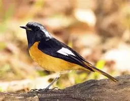 赭红尾鸲:小型鸟类,体长13-16厘米。雄鸟前额、头侧、颈侧、颏至胸概黑色,头顶和背灰色或黑色,…