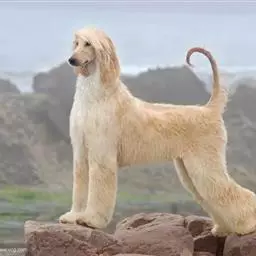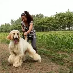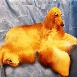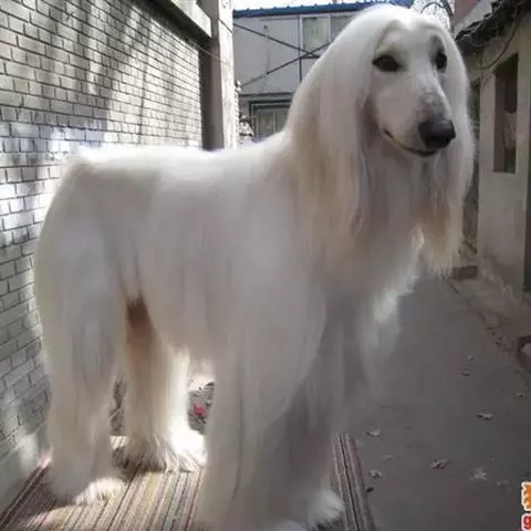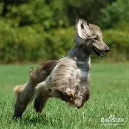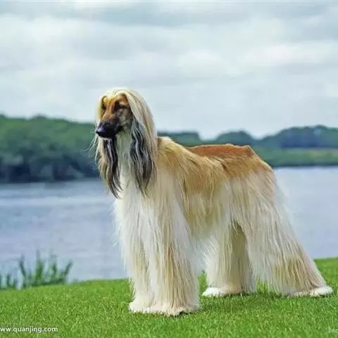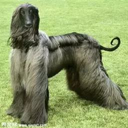 阿富汗猎犬全身披丝绢状的长毛,毛色鲜艳,呈多种颜色,背中线附近毛短,…