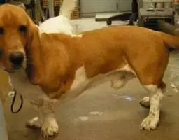 颈部:有力,平顺的融入向后倾斜的、整洁的肩部,有足够的长度,使他能很好的追踪气味。颈部有丰富的毛发,允许有少量赘肉。