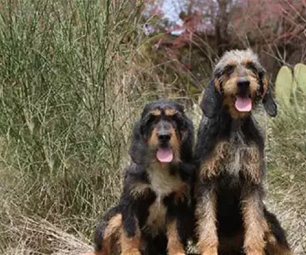 足爪:与前面描述的一样。被毛 被毛也是奥达猎犬的基本特征之一。被毛的质地和品质比长度更重要。外层披毛浓厚、粗糙、杂乱、卷曲,呈不规则起伏的样子。头部和腿下半部分的毛发柔软是自然的。背部的外层披毛的长度约为2~4英寸,四肢的毛发略短。防水的底毛短、羊毛状、略带油质的毛发(基本特征),但在夏天,除了大腿和肩部,可以发现其他部位的底毛变硬。耳朵上覆盖着毛发,尾巴上有饰毛(覆盖的毛发和边缘的毛发)。毛发自然剥落,缺乏长度和“刘海”,是奥达猎犬在工作中的正常现象。正确的猎犬被毛应该有坚硬的外层披毛和羊毛状的底毛。奥达猎犬应该具有自然的被毛,不能修剪或雕琢。