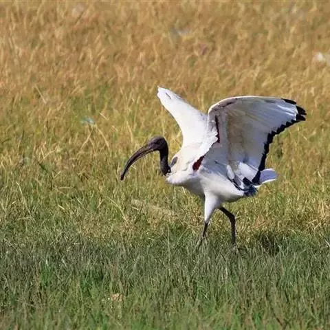 澳洲白鹮与非洲白鹮(又叫圣鹮)、黑头白鹮的区别:(1)澳洲白鹮和圣鹮翅尖为黑色,黑头白鹮翅尖为白色;(2)澳洲白鹮颈部裸露的黑色比黑头白鹮和圣鹮均略少。