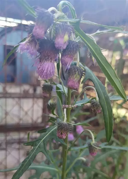 魁蓟菊科蓟属植物,多年生草本,高达1米,茎枝被长毛,基部和下部茎生叶长椭圆形或倒披针状长椭圆形,…