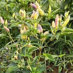 朝天椒茄科辣椒属一年或多年生草本植物;卵形;花通常单只生长于二分叉间,花梗直立,花稍俯垂,…