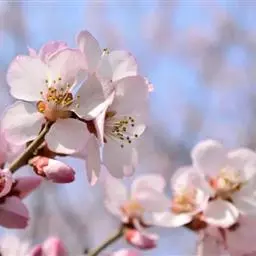 灌木或小乔木,高2-5米;树皮暗灰色;小枝无毛,稀幼时疏生短柔毛,灰褐色或 山杏特征 淡红褐色。叶片卵形或近圆形,长5-10厘米,宽4-7厘米,先端长渐尖至尾尖,基部圆形至近心形,叶缘有细钝锯齿,两面无毛,稀下面脉腋间具短柔毛;叶柄长2-3.5厘米,无毛,有或无小腺体。花单生,直径1.5-2厘米,先于叶开放;花梗长1-2毫米;花萼紫红色;萼筒钟形,基部微被短柔毛或无毛;萼片长圆状椭圆形,先端尖,花后反折;花瓣近圆形或倒卵形,白色或粉红色;雄蕊几与花瓣近等长;子房被短柔毛。果实扁球形,直径1.5-2.5厘米,黄色或桔红色,有时具红晕,被短柔毛;果肉较薄而干燥,成熟时开裂,味酸涩不可食,成熟时沿腹缝线开裂;核扁球形,易与果肉分离,两侧扁,顶端圆形,基部一侧偏斜,不对称,表面较平滑,腹面宽而锐利种仁味苦。花期3-4月,果期6-7月。
