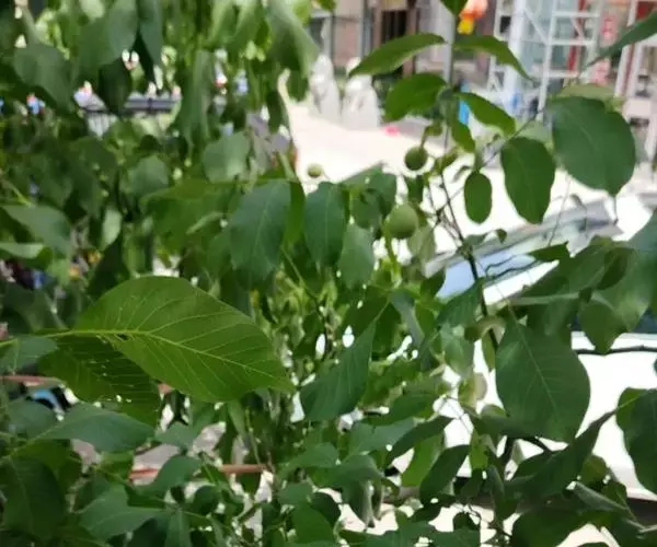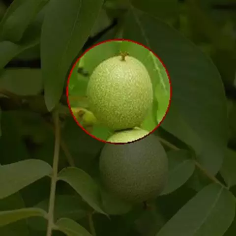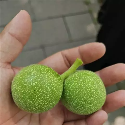 青皮核桃是核桃树落叶乔木,羽状复叶,小叶椭圆形,核果状坚果球形,外果皮平滑,中果皮肉质,内果皮坚硬,有皱纹。木材坚韧,可以做器物,果仁可以吃,可以榨油,也可以入药。